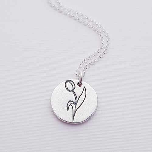 Sterling Silver Round Tulip Spring Flower Pendant Necklace