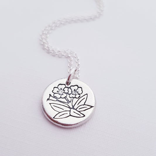 Sterling Silver Primrose February Birth Flower Pendant Necklace