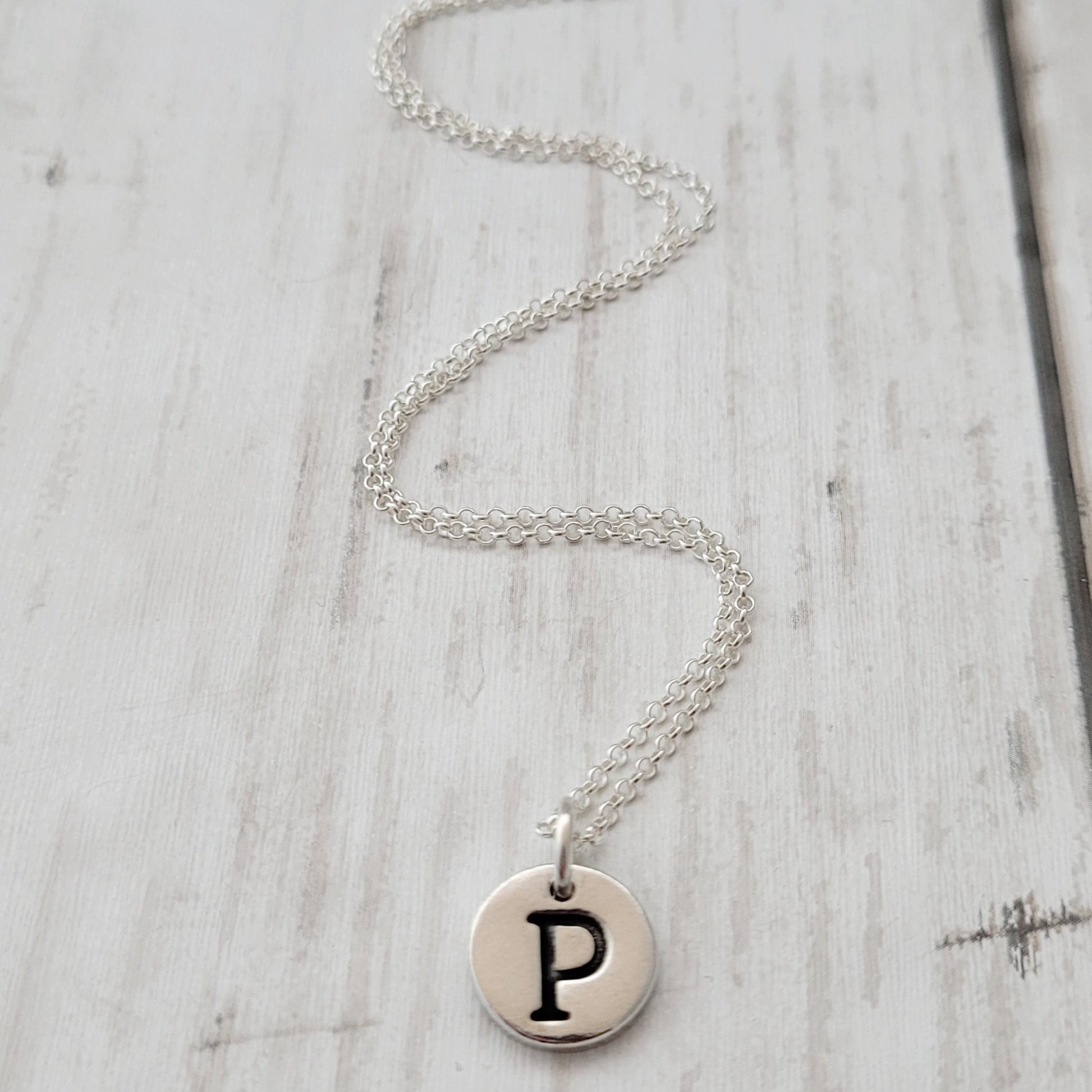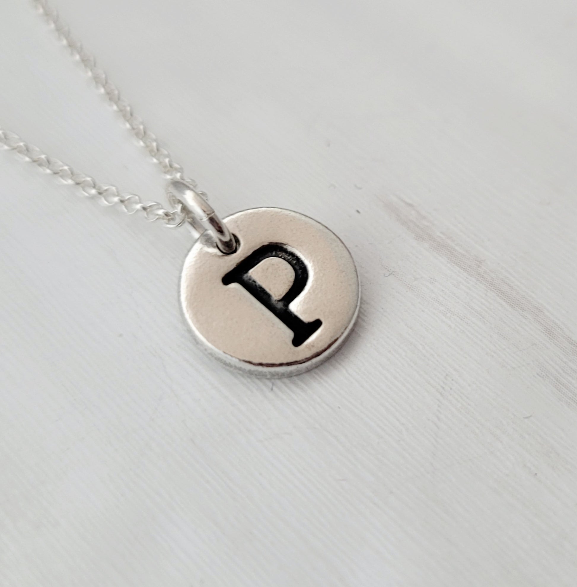 This lovely sterling silver custom tiny round Initial Monogram pendant necklace has been handcrafted from start to finish using metal clay techniques.