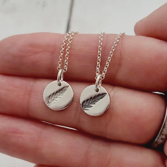 Thesw pretty tiny sterling silver fern leaf necklaces are handcrafted from start to finish.