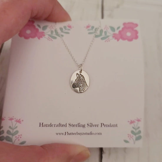 This lovely sterling silver Zebra pendant necklace has been handcrafted from start to finish using metal clay techniques.