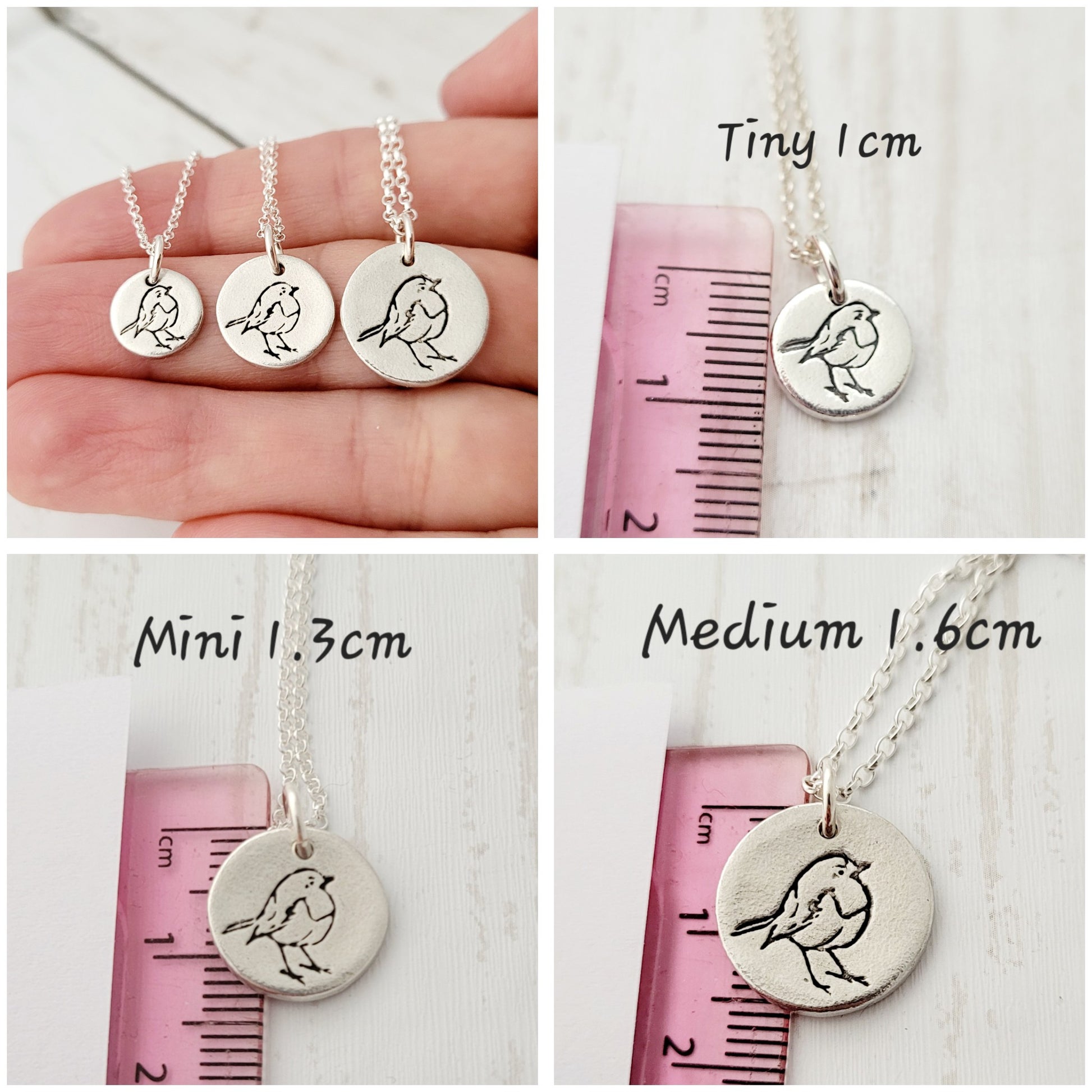 This delicate tiny round robin sterling silver necklace is handcrafted from start to finish.